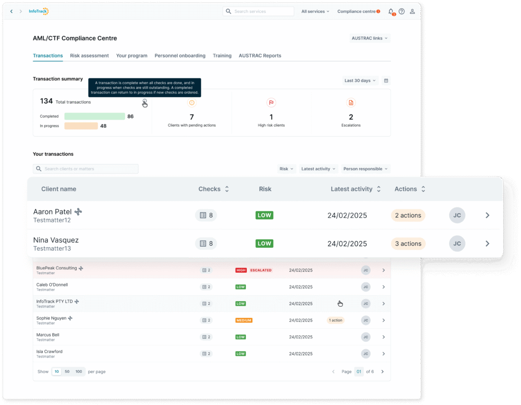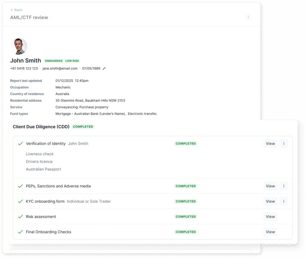 - Reliance support – securely share or rely on checks done by lawyers, conveyancers or other parties to reduce duplication and save time.